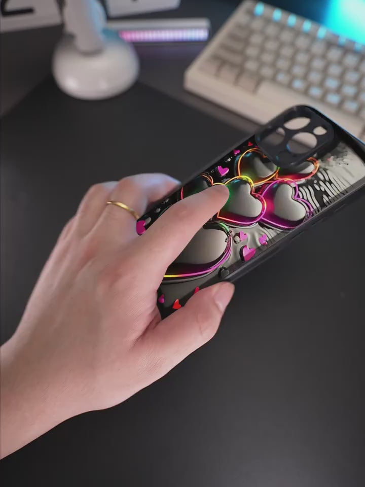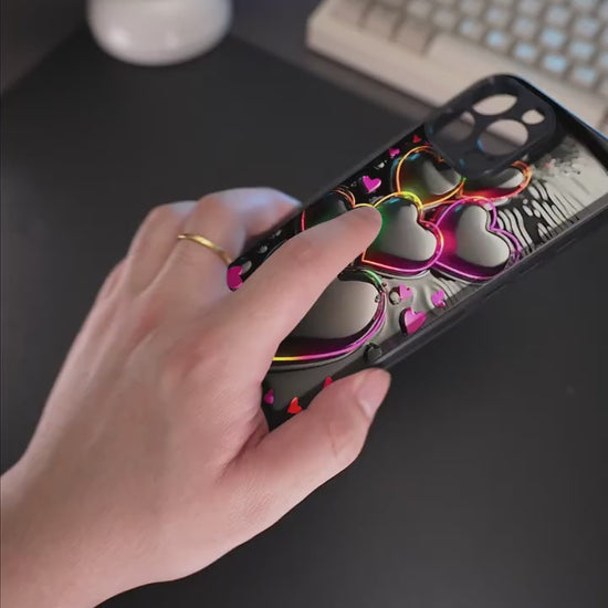 Carcasă Colorată cu Design Inimă Neagră, Anti-Alunecare și Protectivă pentru for Samsung S25 Ultra/S24 Ultra/S23 Ultra/S22 Ultra/S21/S20/Note 20/A71/A56/A55/A54/A53/A52/A51/A36/A35/A34/A33/A32/A25/A23/A22/A16/A15/A14/A12/A06 – Funcție de Control Vocal Sm