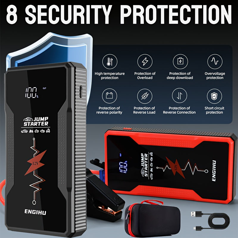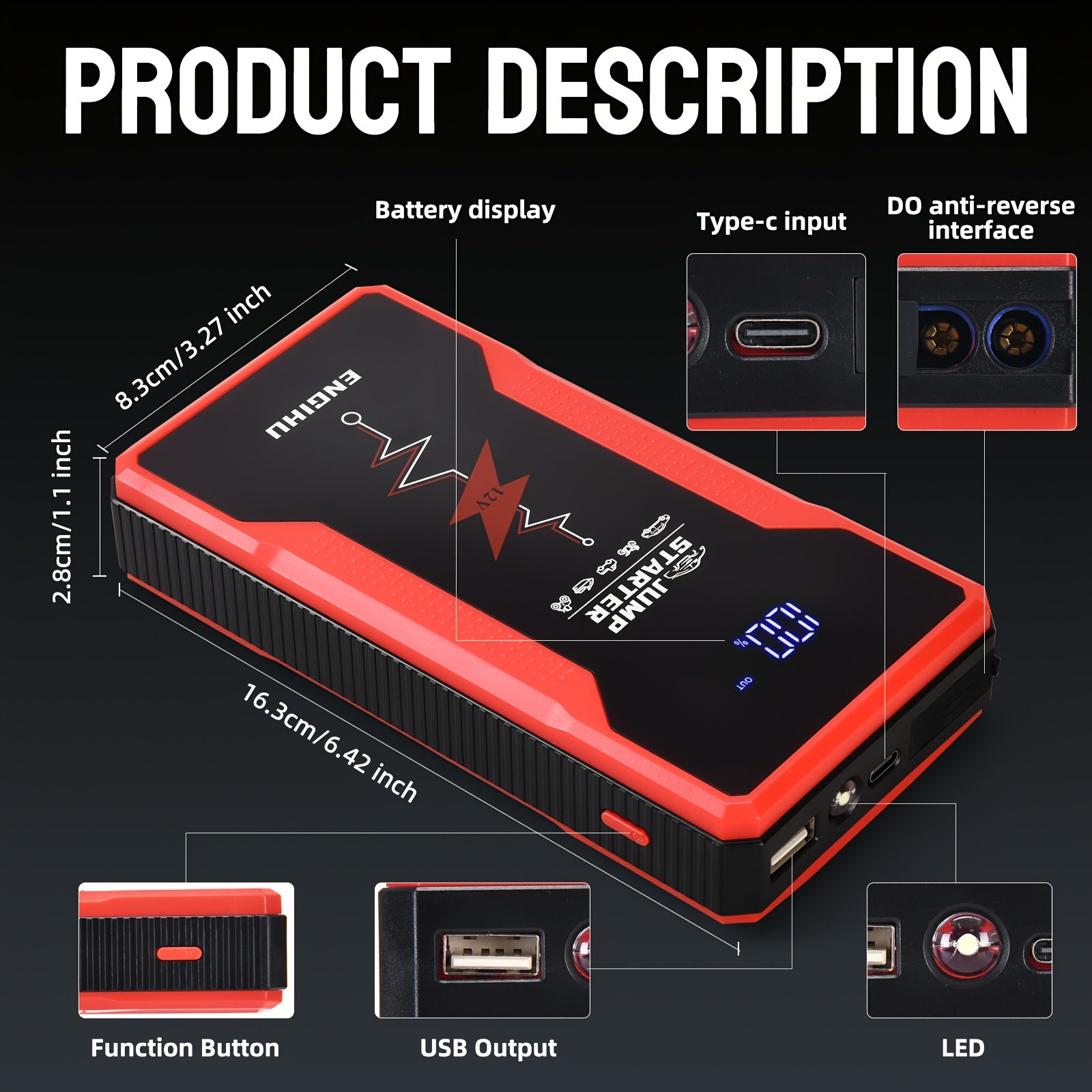 Începătorul bateriei auto, piese de schimb pentru mașină, bunătăți de urgență, începere de mașină cu benzină și diesel 12V, alimentare de putere pentru începere de urgență în călătorie, cadou de sărbători, | Încărcător de baterie auto cu ecran mare îmbun